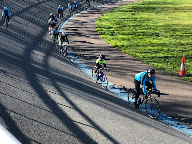 We tried a track drill today down on the natural velodrome. We split riders into teams of three or four, with two of riders resting 'high' and two racing as a team 'low'. Throw into the mix the slightly organic nature of the velodrome and the varying abilities and speeds of the groups and the likelihood of this succeeding seemed very low!